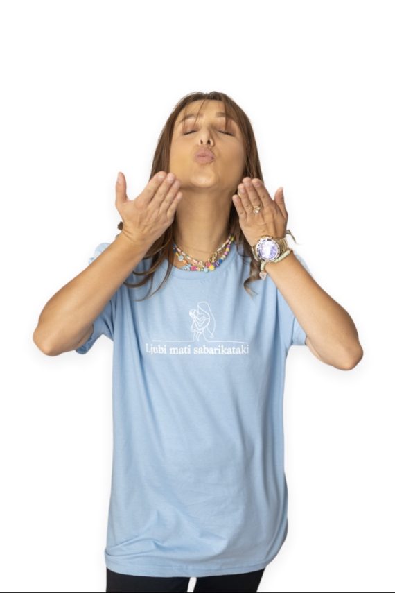 Gornji dio ima prošireni kroj s opuštenim rukavima i spuštenim ramenima, što doprinosi modernom i ležernom izgledu. Uz jednostavan dizajn koji možete lako prilagoditi, majicu možete nositi uvučenu ili spuštenu za različite stilove.