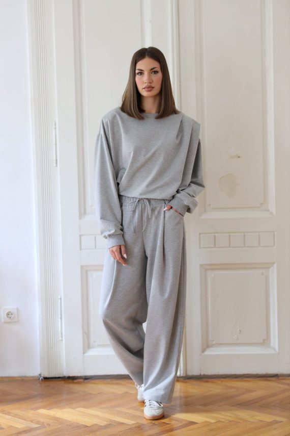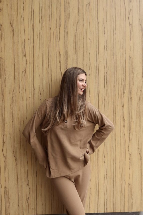 Predstavljamo vam udoban i elegantan set, savršen spoj stila i udobnosti za svakodnevno nošenje. Ovaj komplet sastoji se od opuštene majice dugih rukava i ravnih hlača visokog struka, izrađenih od mekog materijala koji pruža osjećaj ugode tokom cijelog dana.