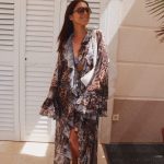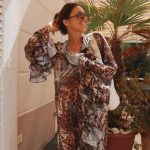 Aydi je duga, prozračna i lagana haljina koja nježno pada i stvara efekt slobodnog pokreta, idealna za vruće ljetne dane na plaži ili bazenu. Dugački, široki kroj s otvorom sprijeda i raskošnim volanima duž ruba, koji naglašavaju lepršavost i eleganciju pri svakom koraku.