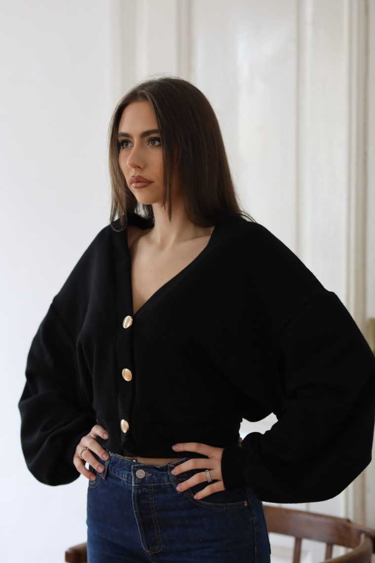 Cozy elegantni džemper sa zlatnim dugmadima kombinuje jednostavnost i luksuz u savršenom balansu. Mekan i prijatan na dodir, pruža osjećaj udobnosti tokom cijelog dana. Zahvaljujući laganom kroju i spuštenim ramenima, lako se uklapa u svakodnevne i elegantne kombinacije. Idealno pristaje uz farmerice, pantalone ili suknju za moderan, bezvremenski izgled.