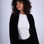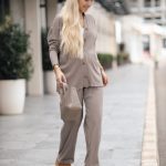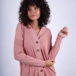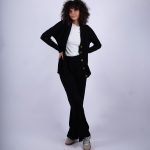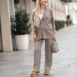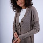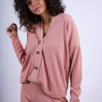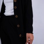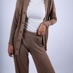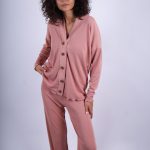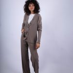 Set sastavljen od kardigana sa gumbima i ravnim hlačama.