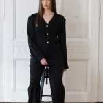 Ginny elegantni crni džemper sa V-izrezom i dugim rukavima, savršen za sve prilike. Napravljen od kvalitetnog i udobnog materijala koji pruža toplinu i komfor. Džemper ima minimalistički dizajn sa tri dekorativna dugmeta u zlatnoj boji, koja dodaju dozu sofisticiranosti. Idealan je za kombinovanje uz pantalone ili suknje, lako se uklapa u svakodnevne i poslovne odijevne kombinacije.