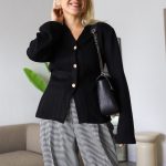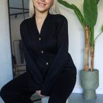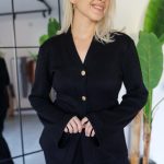 Ginny elegantni crni džemper sa V-izrezom i dugim rukavima, savršen za sve prilike. Napravljen od kvalitetnog i udobnog materijala koji pruža toplinu i komfor. Džemper ima minimalistički dizajn sa tri dekorativna dugmeta u zlatnoj boji, koja dodaju dozu sofisticiranosti. Idealan je za kombinovanje uz pantalone ili suknje, lako se uklapa u svakodnevne i poslovne odijevne kombinacije.