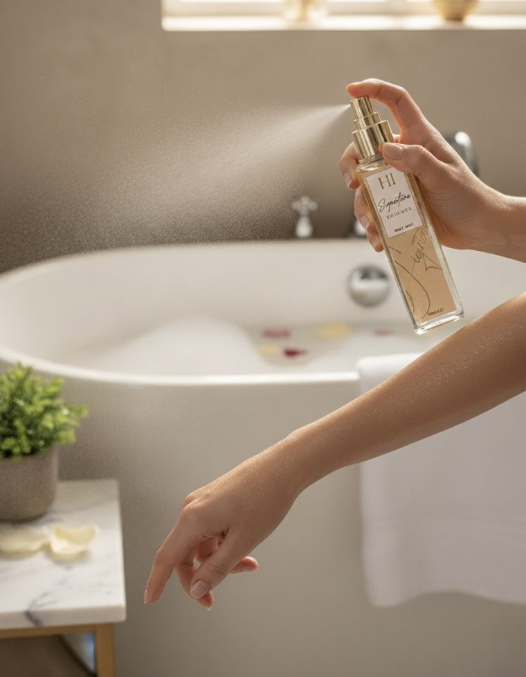 HI Signature body mist nije samo miris – to je doživljaj. Lagana tekstura i svjetlucavi efekt čine ga savršenim dodatkom tvojoj beauty rutini, ostavljajući kožu mirisnom, osvježenom i blistavom.