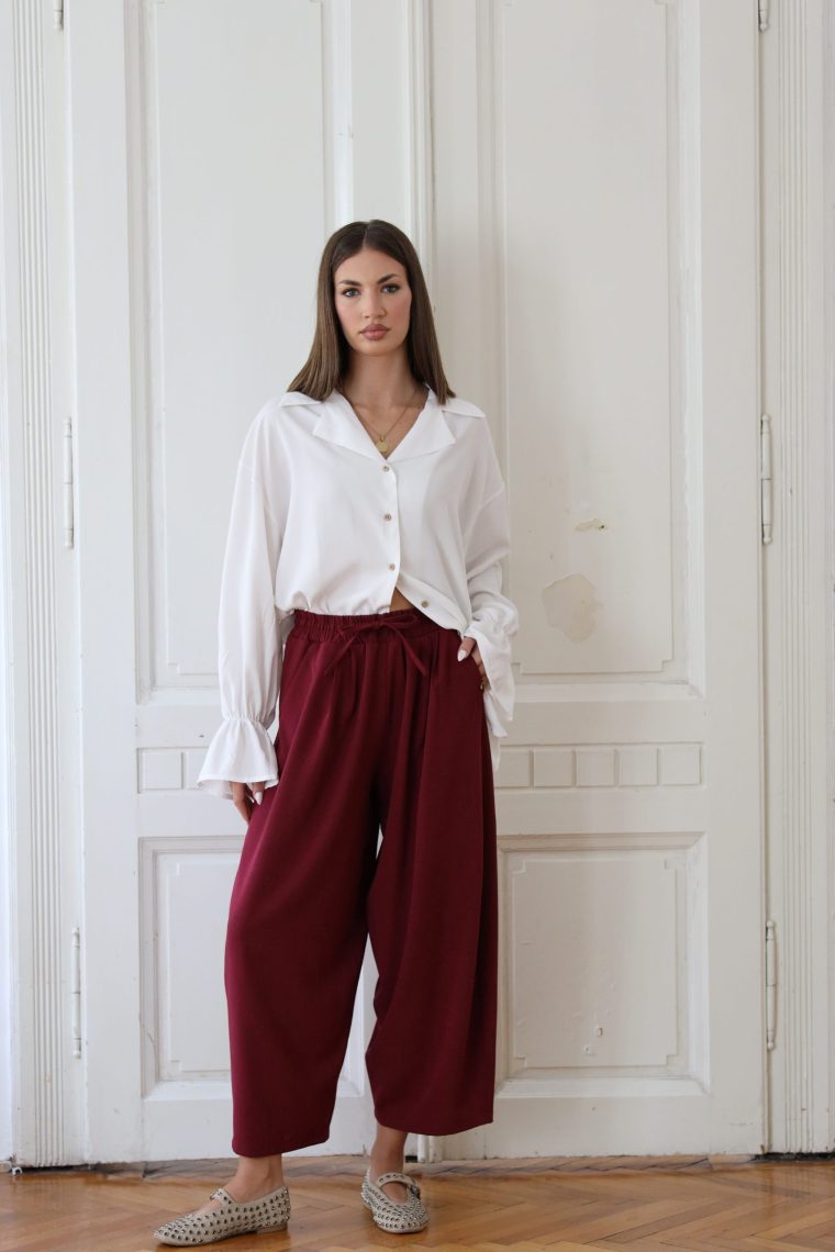 Hlače Dalia ease donose spoj elegancije i udobnosti u modernom, širokom kroju koji se prilagođava svakoj figuri. Izrađene su od laganog, prozračnog materijala koji omogućava slobodu pokreta i savršen pad tkanine. Elastični pojas s trakicama pruža dodatnu udobnost i prilagodljivost, dok jednostavan dizajn omogućava lako kombinovanje uz košulju, majicu ili sako.