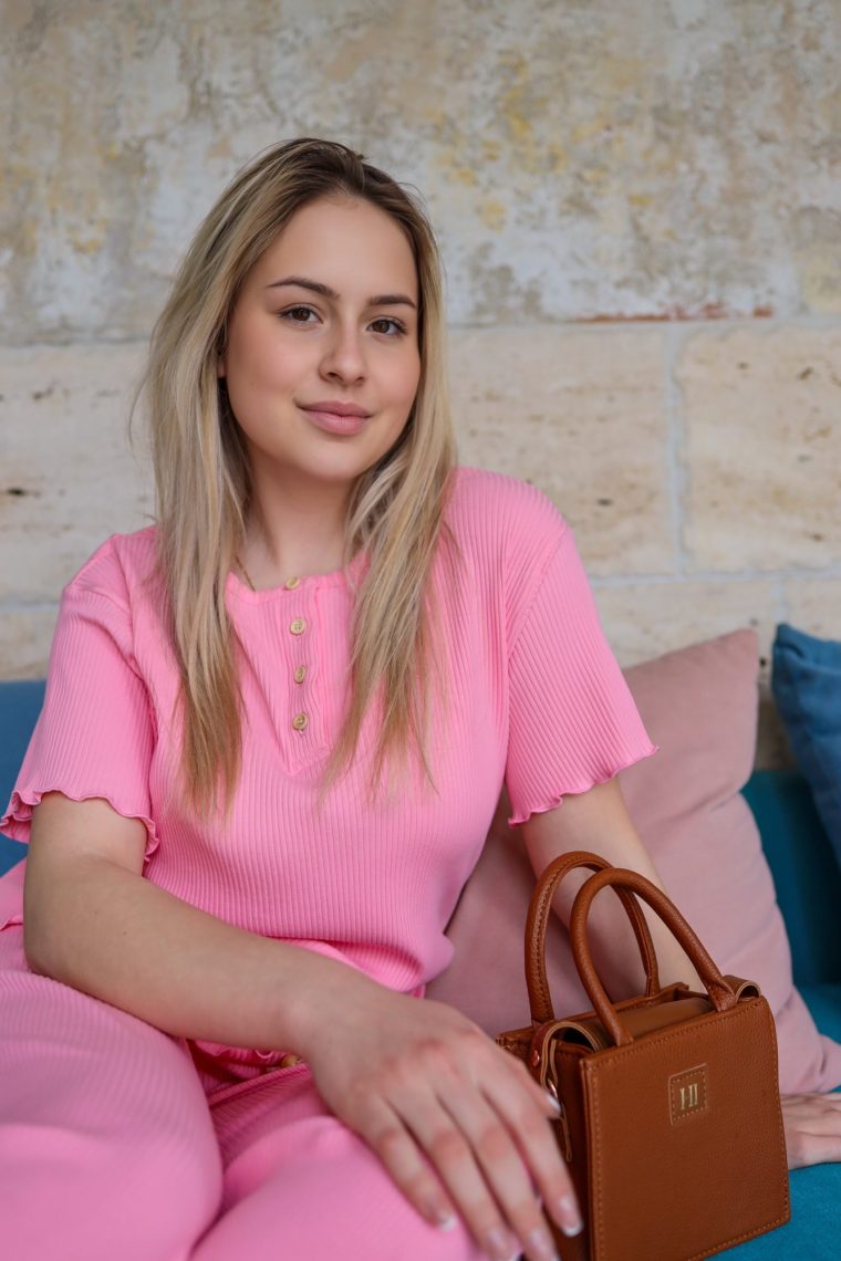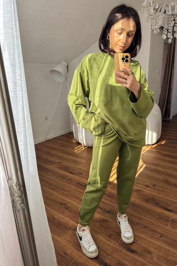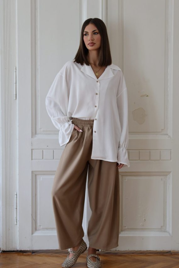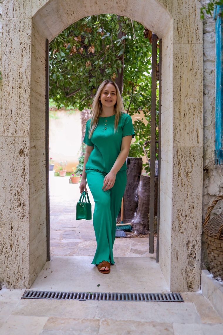 Inara je dvodijelni pamučni set koji se sastoji od majice kratkih rukava i širokih, dugih hlača. Majicu odlikuju dugmići dok su rukavi i nogavice valovite obrade. Set je jako elastičan i pruža udobnost, jednostavnost a ujedno i eleganciju.