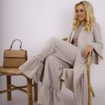 Set Indie sastoji se od kimona i hlača koje krase volani pri krajevima. Radjen je od vrlo ugodnog materijala i pogodan za skoro sva godisnja doba.