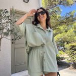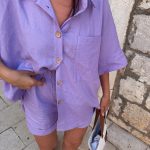 Uživajte u savršenom spoju udobnosti i stila s našim lanenim setom, izrađenim od laganog i prozračnog lana, idealnog za ljeto. Set se sastoji od oversized košulje s kratkim rukavima i funkcionalnim džepom, te udobnih kratkih hlača s elastičnim pojasom koji se savršeno prilagođava tijelu. Detalji poput drvenih dugmadi i nježno spuštenih ramena daju ovom kompletu opušten izgled.