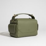 Lora torba je izrađena od kvalitetne, blago teksturirane kože što joj daje moderan izgled. Njen strukturalni oblik sa zaobljenim ivicama i preciznim šavovima naglašava vrhunsku izradu i pažnju prema detaljima. Preklop na prednjoj strani s diskretnim monogramom “HI” doprinosi njenoj suptilnoj estetici, dok zlatni metalni detalji, poput kopče i patentnog zatvarača, unose dozu luksuza. Elegantna ručka na vrhu pruža praktičnost za nošenje u ruci.