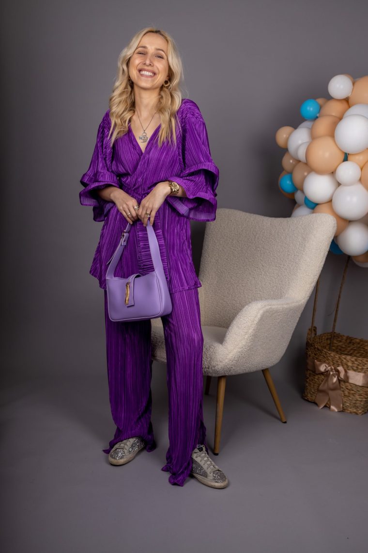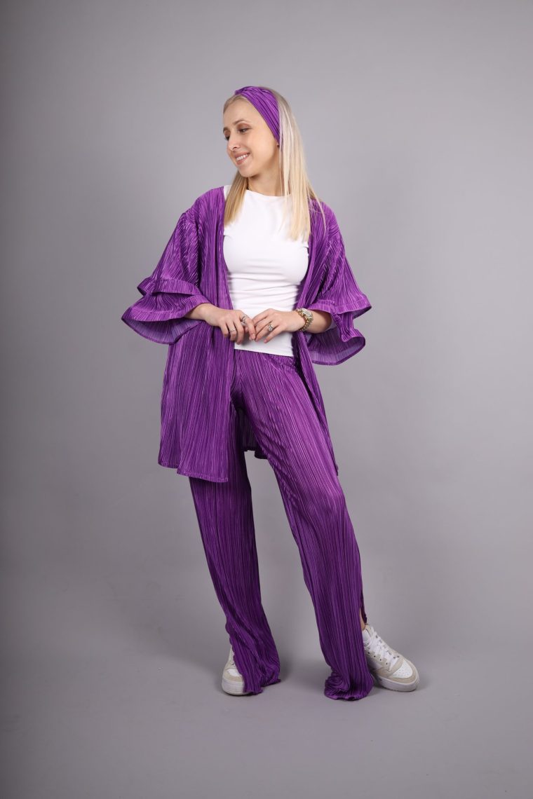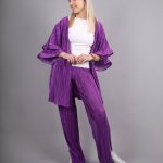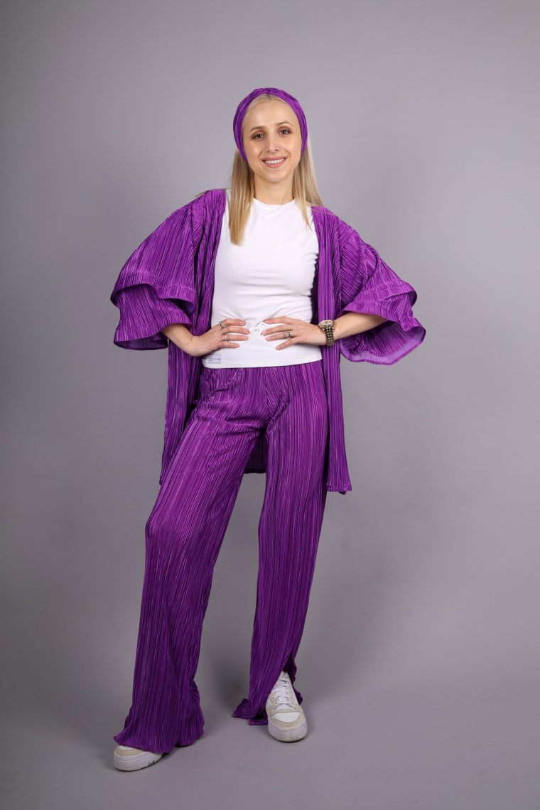 Reina set elegantna ljubičasta tkanina izrađena je od 100% poliestera, što joj daje izuzetnu izdržljivost i dugotrajnost. Materijal je lagan, prijatan na dodir i omogućava koži da diše, što ga čini idealnim za cjelodnevno nošenje. Poliester osigurava da boja ostane intenzivna i postojana čak i nakon više pranja. Glatka tekstura pruža osjećaj luksuza i dodatnu udobnost pri svakom pokretu. Ljubičasta nijansa donosi sofisticiran i moderan izgled koji se lako uklapa u različite stilove i prilike. Materijal se lako održava, brzo se suši i otporan je na gužvanje.