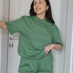 Udobnost i stil spojeni u savršen dnevni set. Gornji dio dolazi u oversized kroju s kratkim rukavima i spuštenim ramenima, pružajući maksimalnu slobodu pokreta i ležeran izgled. Donji dio su kratke hlače s elastičnim pojasom i bočnim džepovima koji savršeno prate liniju tijela bez stezanja.