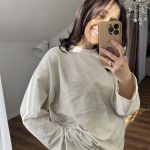 Sajra 2.0 set se sastoji od široke majice dugih rukava i udobnih hlača. Gornji dio je oversized kroja s velikim džepom na prsima, dok su hlače ravnog kroja s elastičnim strukom. Kombinacija je ležerna i udobna.