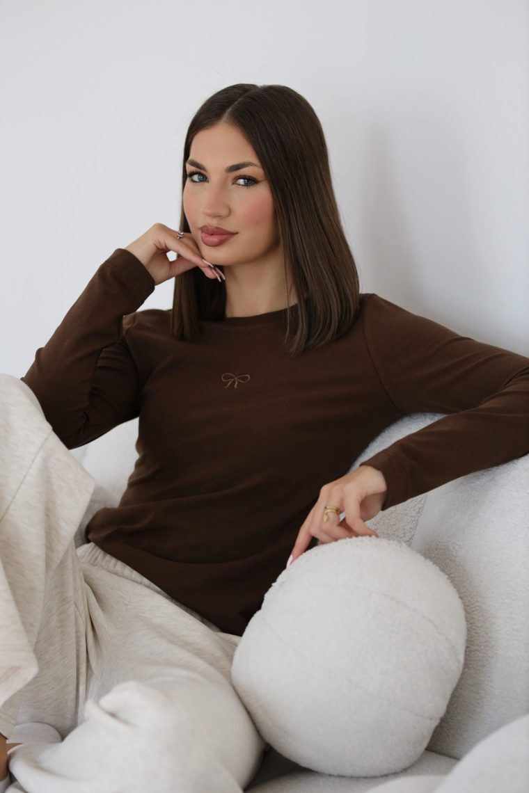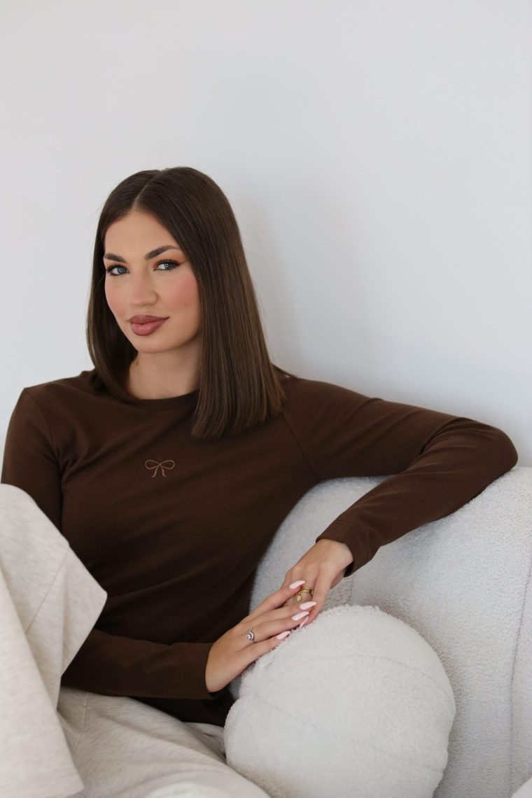 Majica Signature dugi rukav donosi spoj minimalizma i udobnosti kroz jednostavan kroj i prepoznatljiv detalj mašnice izvezen na prsima. Izrađena od mekanog, prijatnog materijala koji lijepo prati liniju tijela, savršena je za svakodnevno nošenje. Lako se kombinuje uz farmerke, suknje ili sako, čineći je neizostavnim komadom u garderobi. Dostupna je u više klasičnih tonova — crnoj, smeđoj, maslinastoj i ljubičastoj.