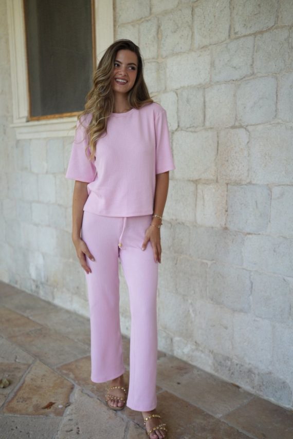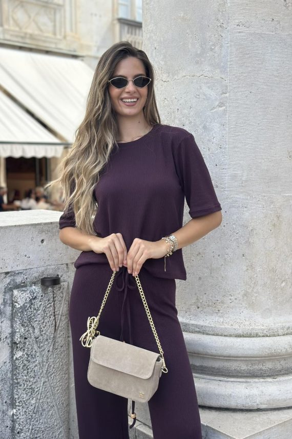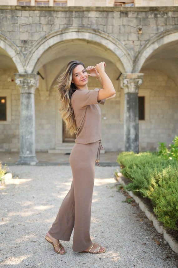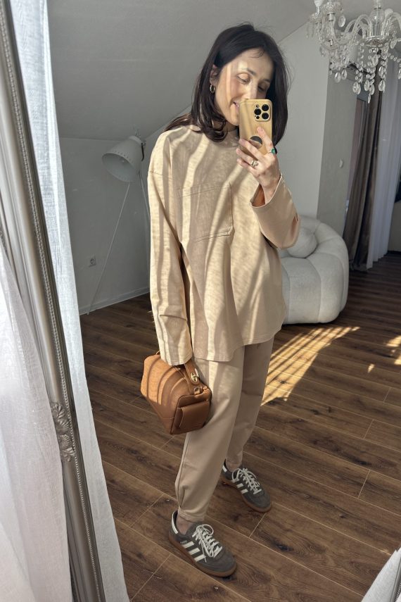 Predstavljamo vam udoban i elegantan set, savršen spoj stila i udobnosti za svakodnevno nošenje. Ovaj komplet sastoji se od opuštene majice dugih rukava i ravnih hlača visokog struka, izrađenih od mekog materijala koji pruža osjećaj ugode tokom cijelog dana.