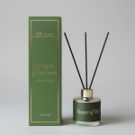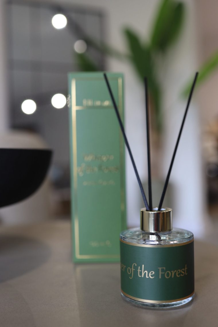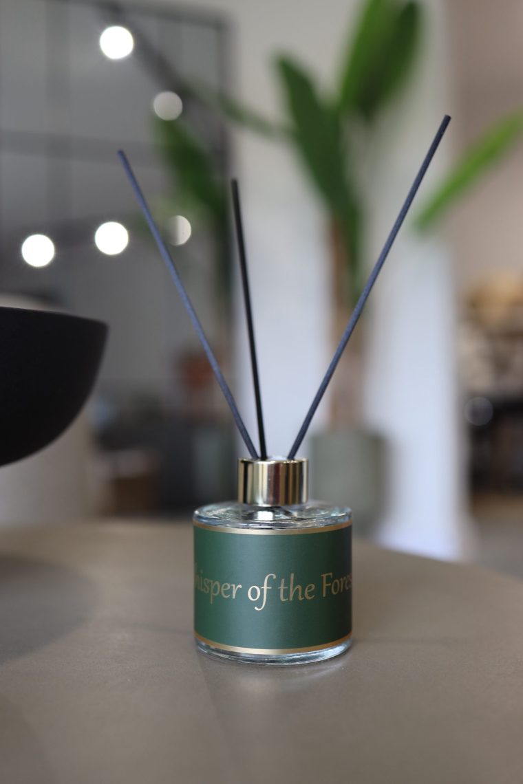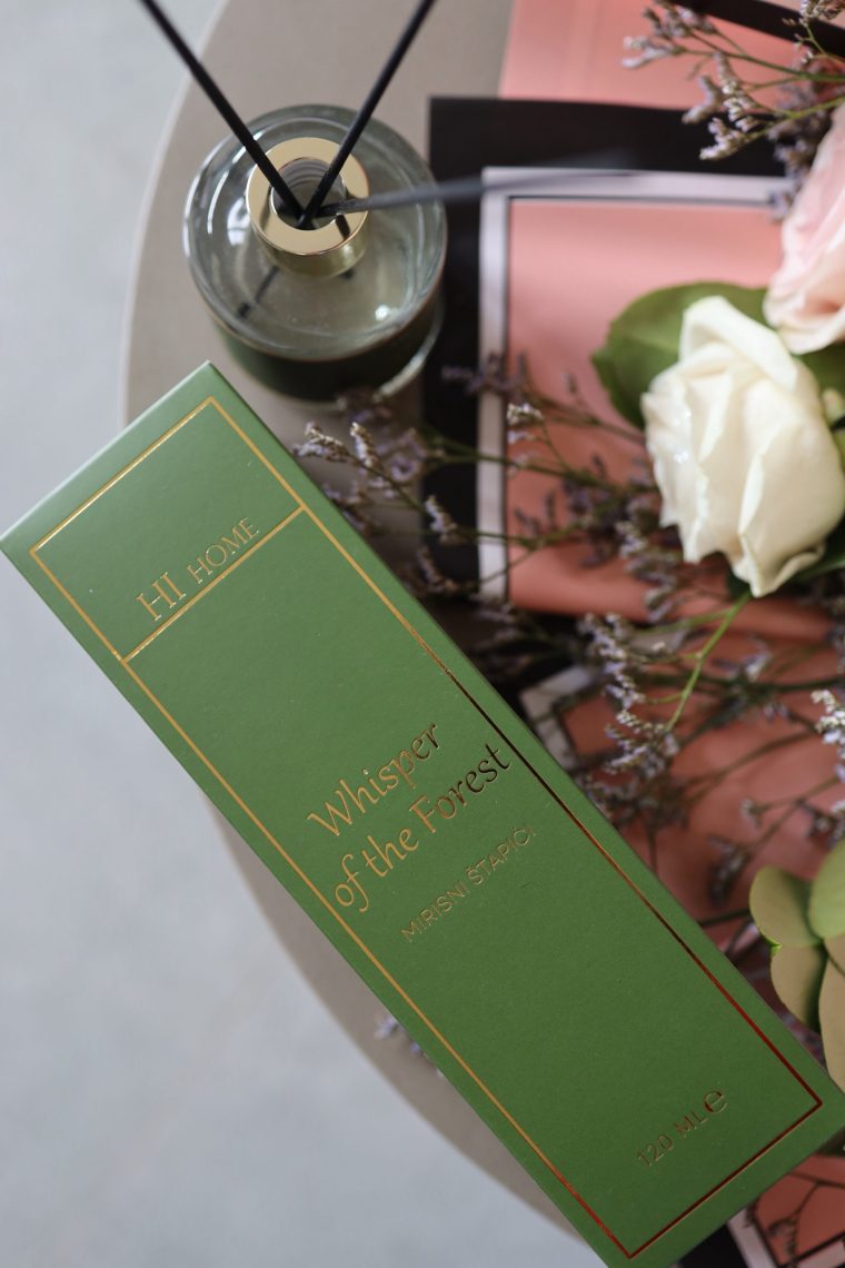 Whisper of the Forest su naš premium mirisni štapići. Pakovanje u zelenoj kutiji sa zlatnim detaljima sugeriše luksuzan ili prirodan karakter proizvoda. Bočica s mirisom dolazi sa štapićima, koji se ubacuju u tečnost kako bi upili miris i postepeno ga širili po prostoru. Miris sadrži note koje podsjećaju na prirodu i svježinu prirodnih prostora.